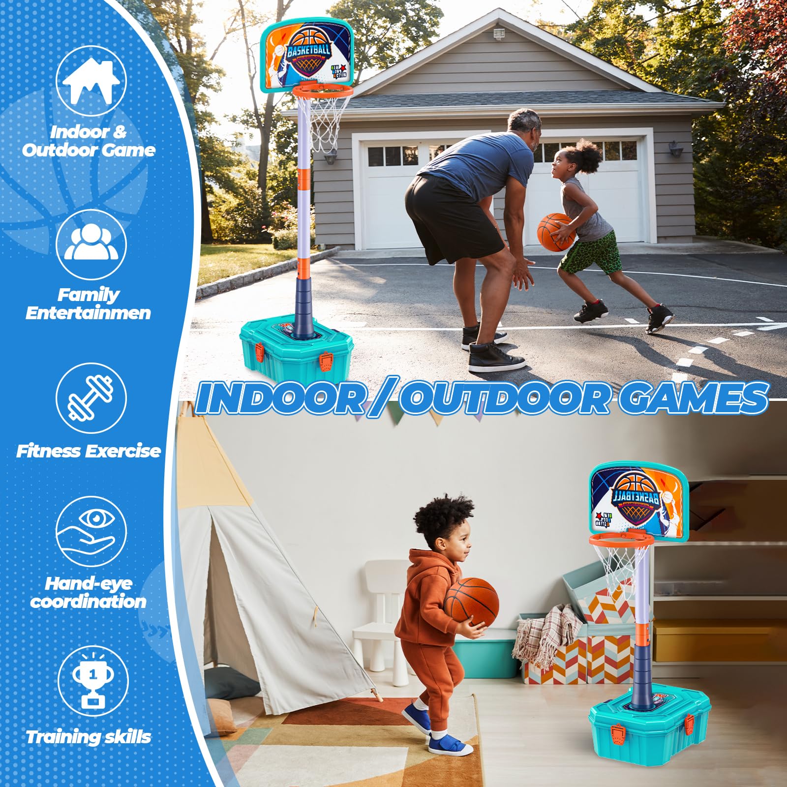 - Adjustable Toddler Basketball Hoop: Our basketball hoop indoor is great for kids. The height can be adjusted from 21.6" to 47.2", which is perfect for growing kids 1 2 3 4 5 years old. Raise the height to increase the difficulty as your kids grow. Encourages preschoolers and toddlers to play independently while working on balance and improving their hand-eye coordination