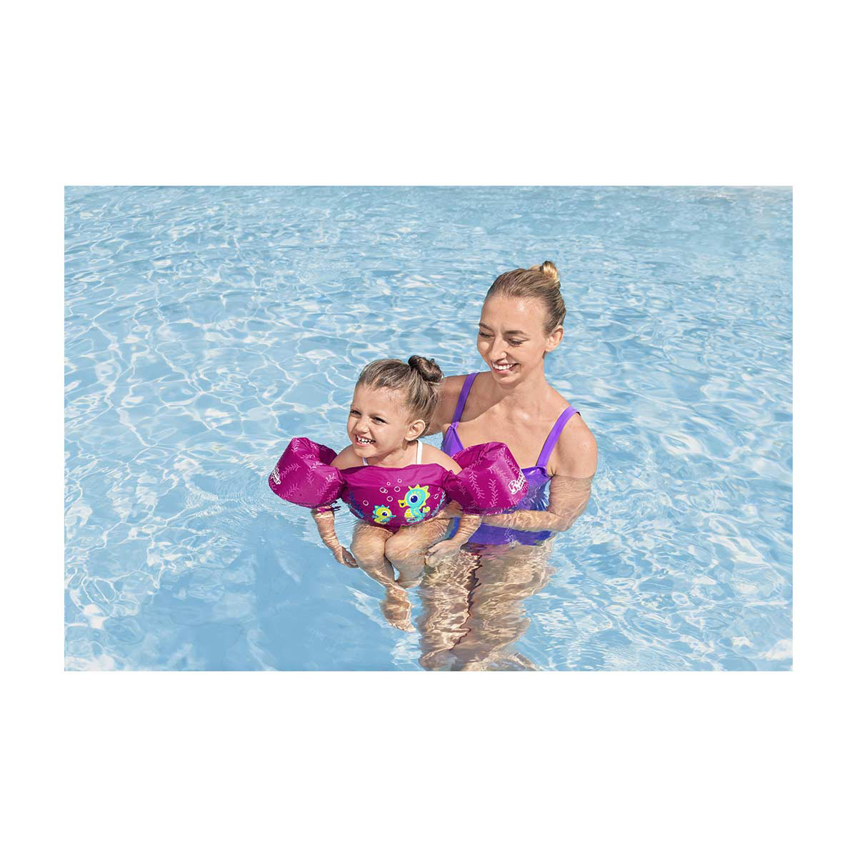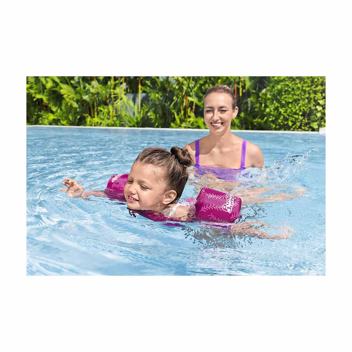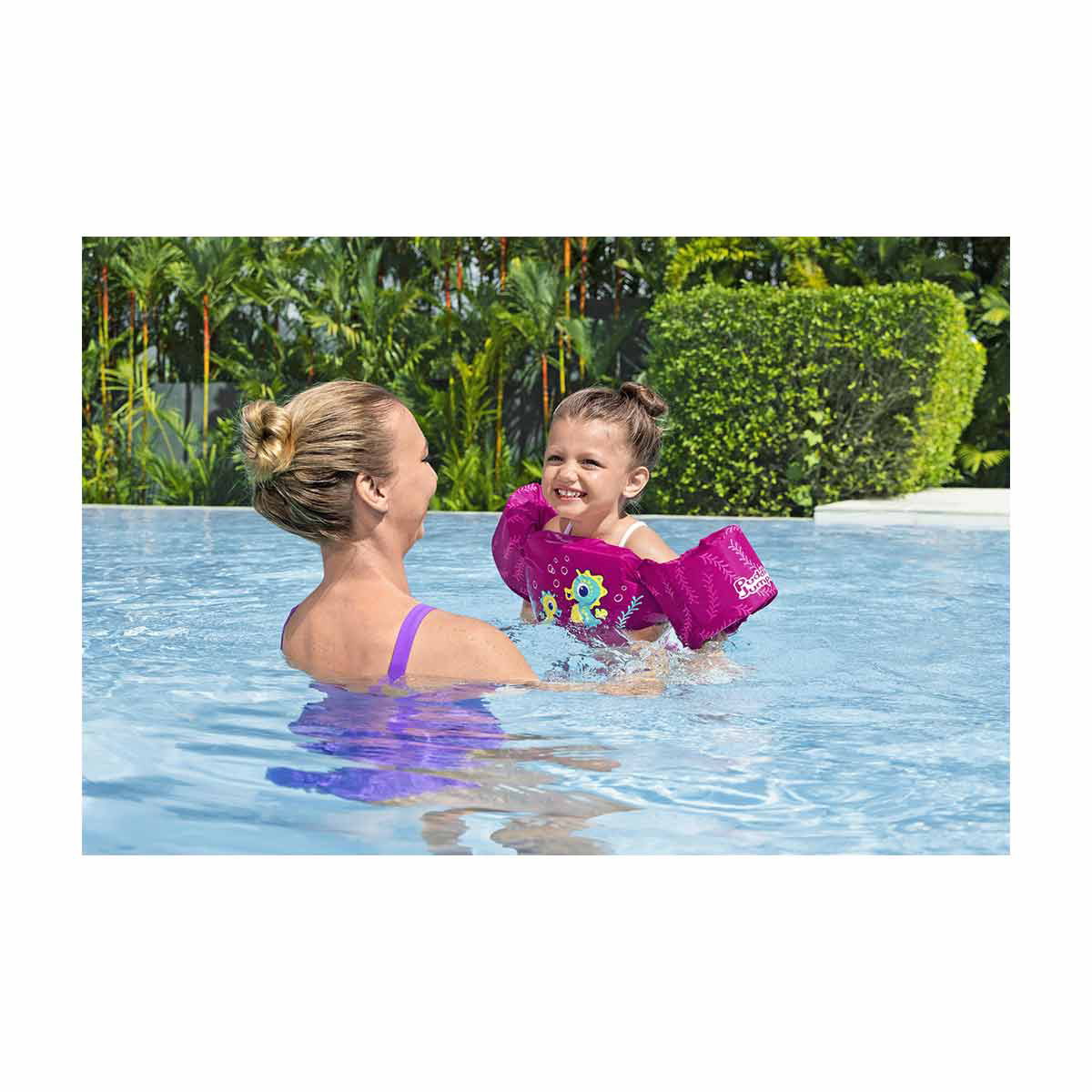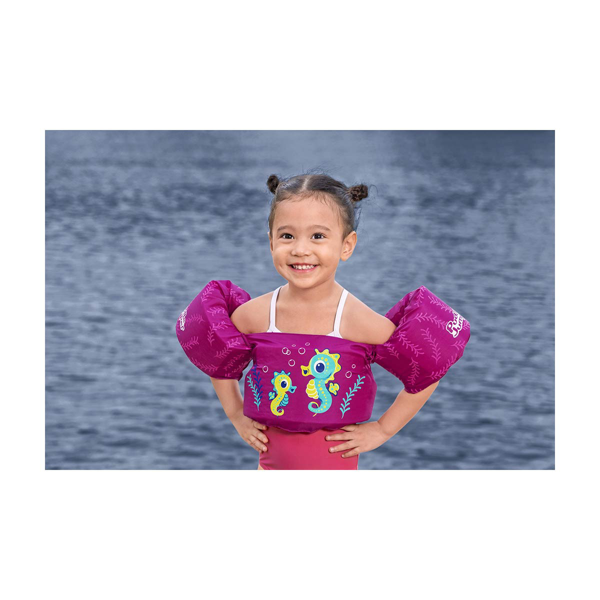 - Made from soft, durable woven polyesterBalanced flotation for freedom of movementEasy to put on and take off with a secure buckle at the backGreat for pool, beach, or lake use