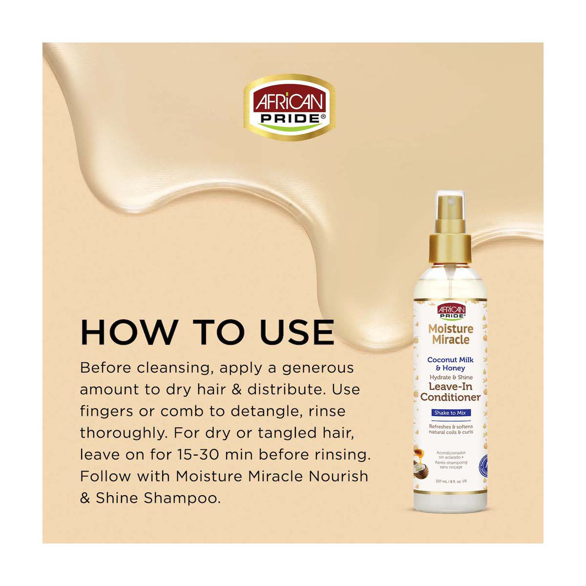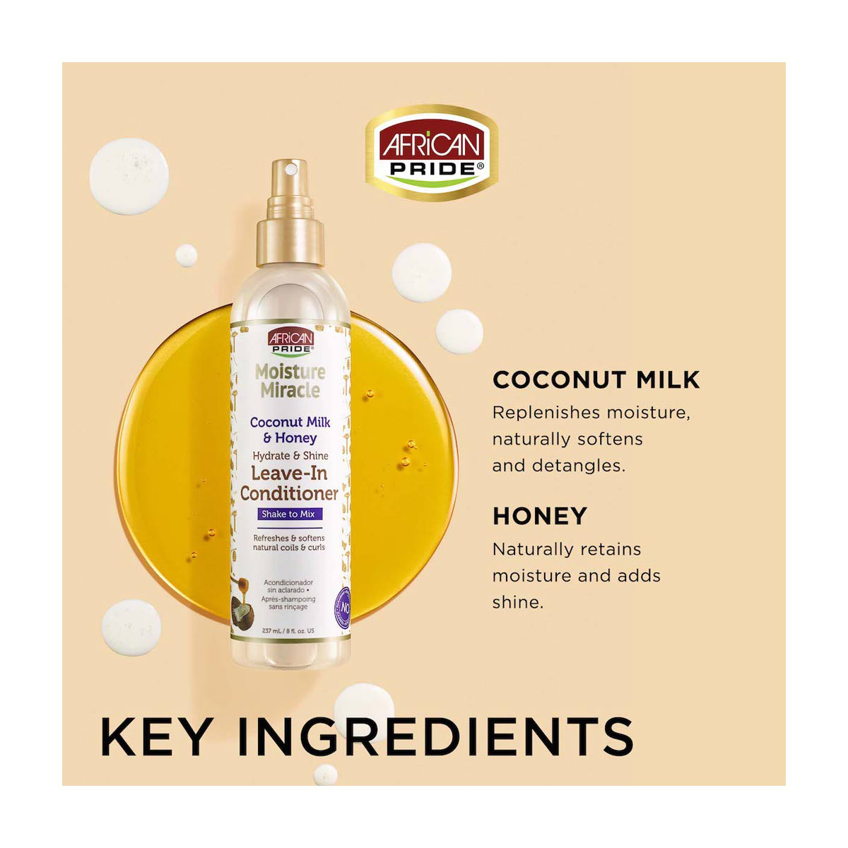 • African Pride Moisture Miracle Coconut Milk & Honey Hydrate & Shine Leave-In Conditioner, 8 oz