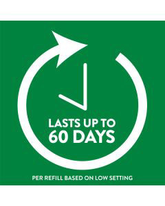 - The latest version comes with 24/7 OdorProtect technology that fights odors around the clock, Each refill provides up to 60 days on low setting of automatic and continuous fragrance. Latest device provides up to 70 days per refill on low setting