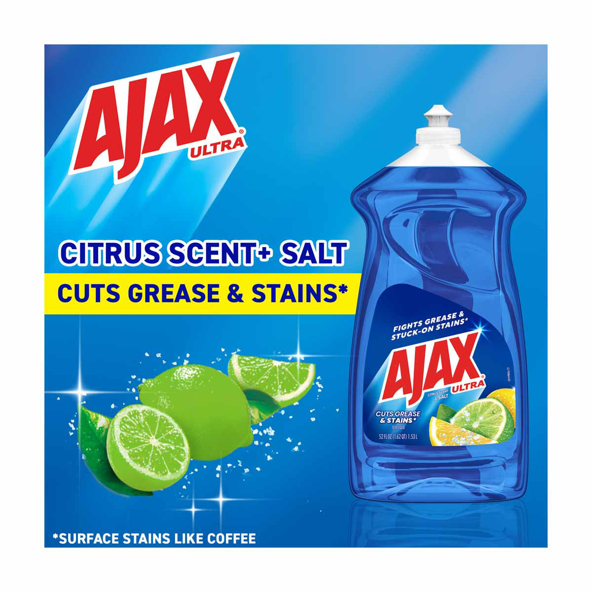 - One 52 oz Bottle of Ajax Ultra Dish Soap Citrus Scent and Salt, Cuts Grease and Stains