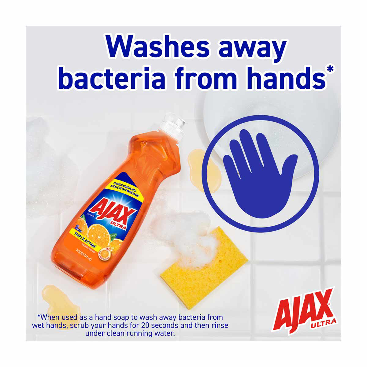 - This product also washes away bacteria on hands (when used as a handsoap, to wash away dirt and bacteria from hands, wash them for 2 seconds under clean running water) and fights odor on dishes.
