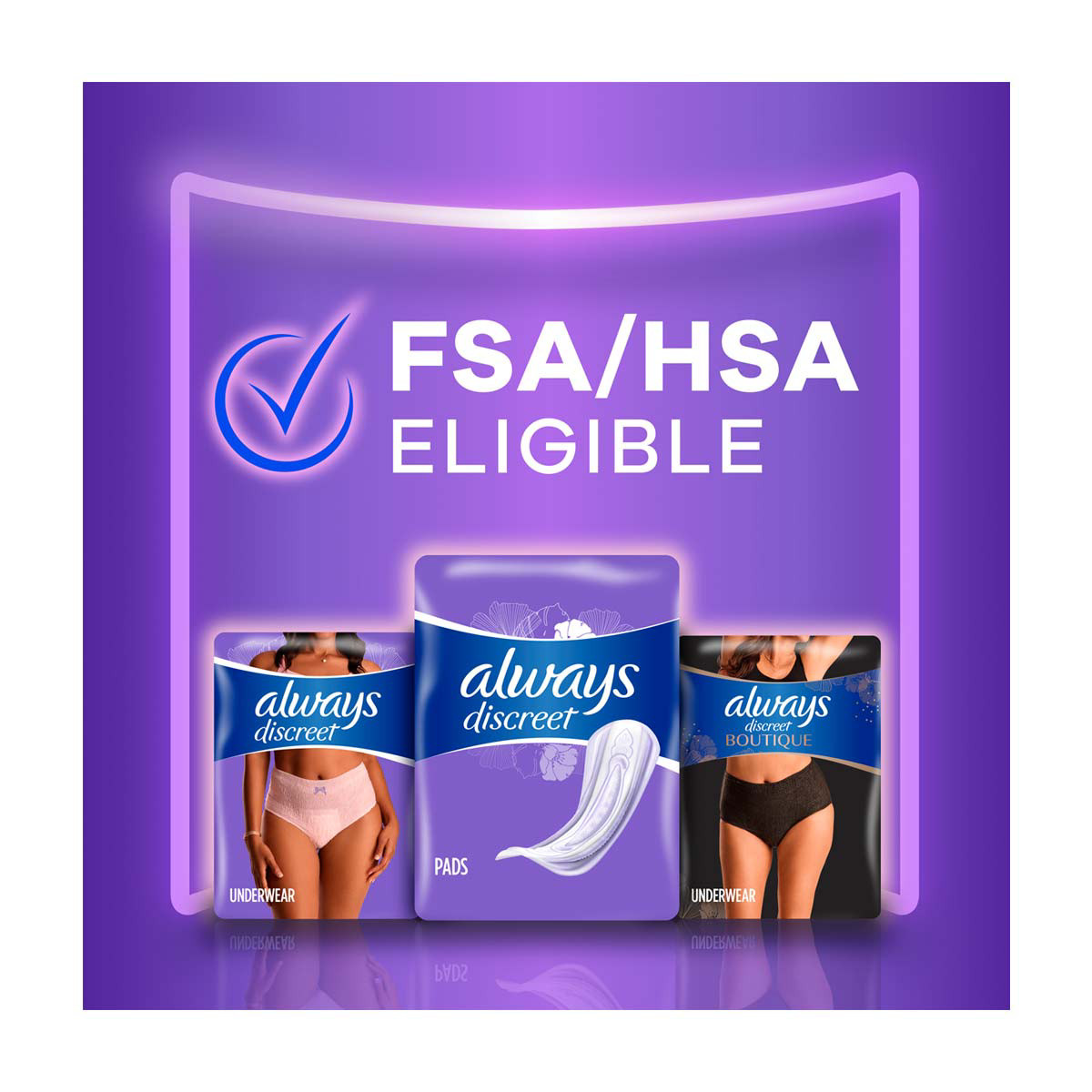 • Always Discreet Adult Incontinence Pads for Women, Extra Heavy Absorbency, Long Length, Postpartum Pads, 45 CT