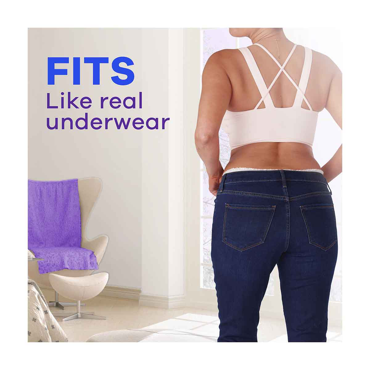 • Soft, cotton-like fabric offers a comfortable, discreet fit that feels like real underwear