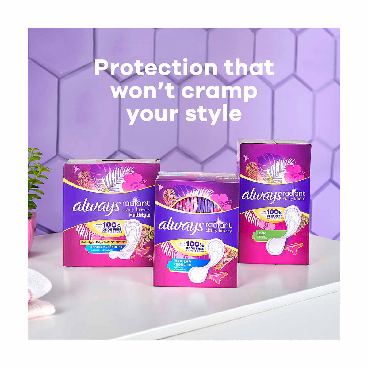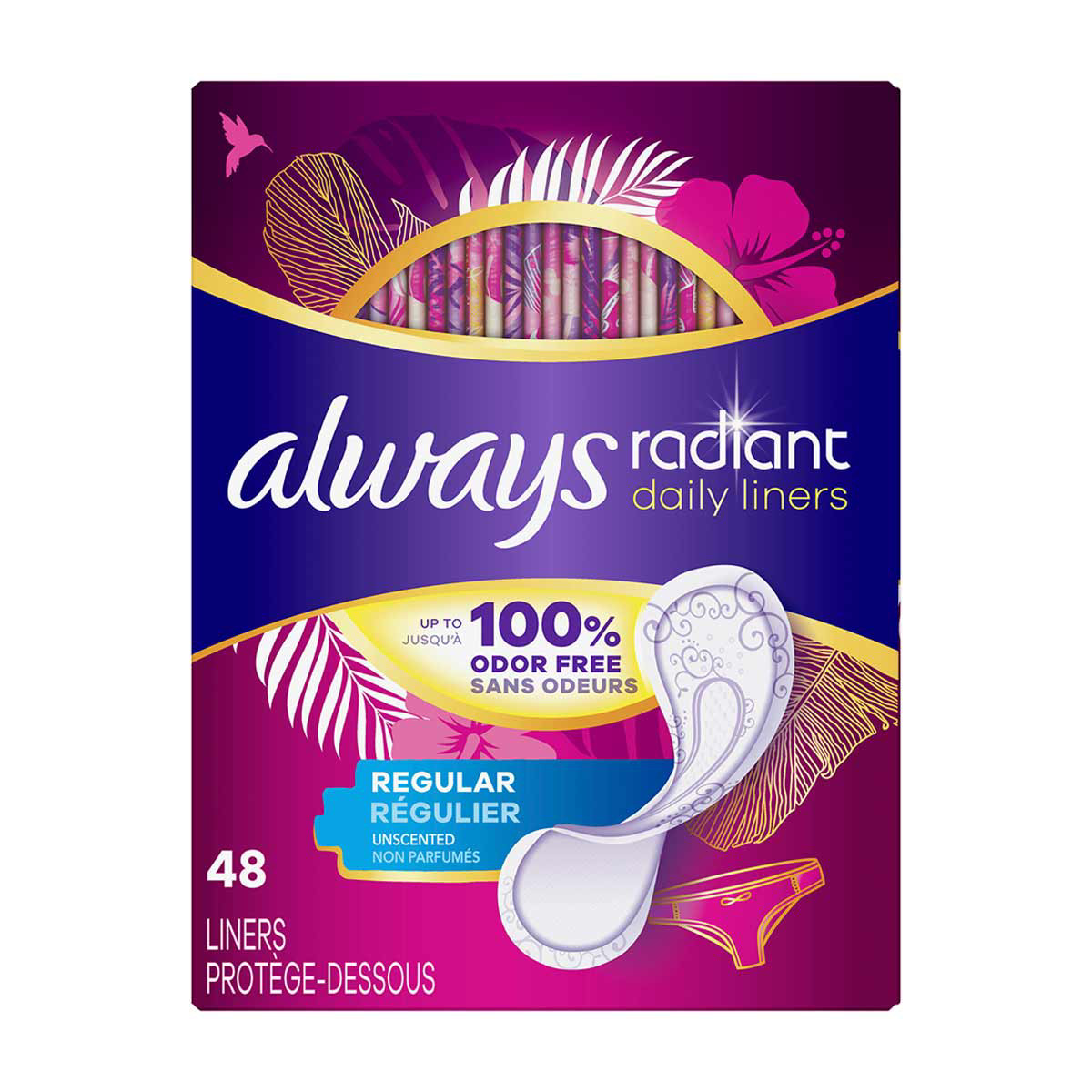 • GET UP TO 100% ODOR-FREE PROTECTION with Always Radiant Daily Liners