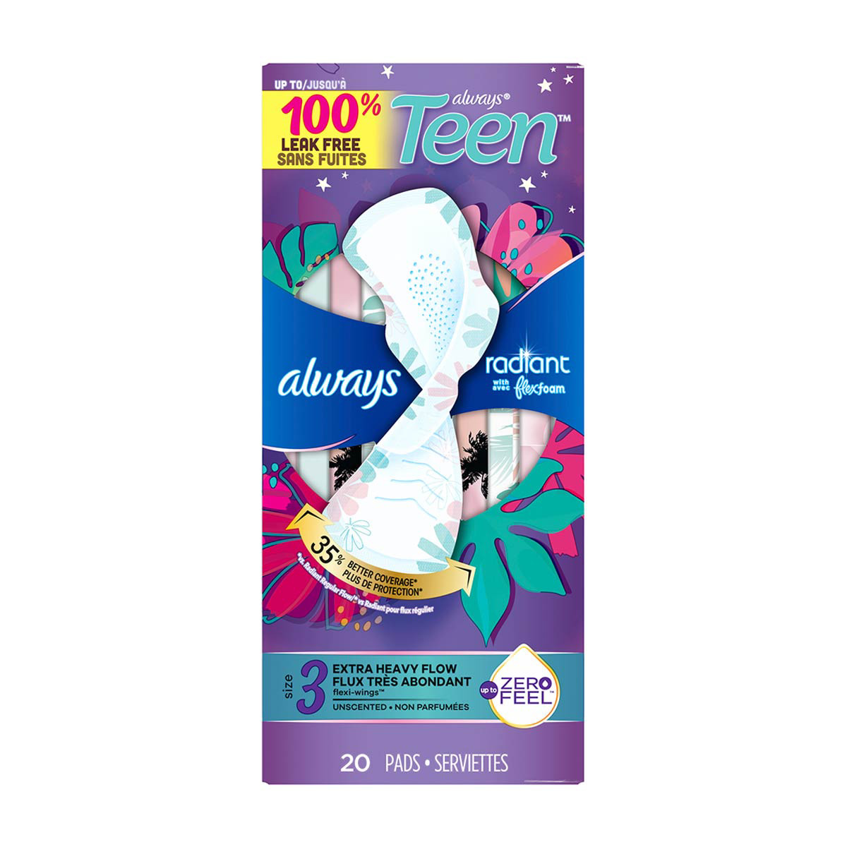 - GET UP TO 100% LEAK PROTECTION with Always Radiant Pads for Teen Girls