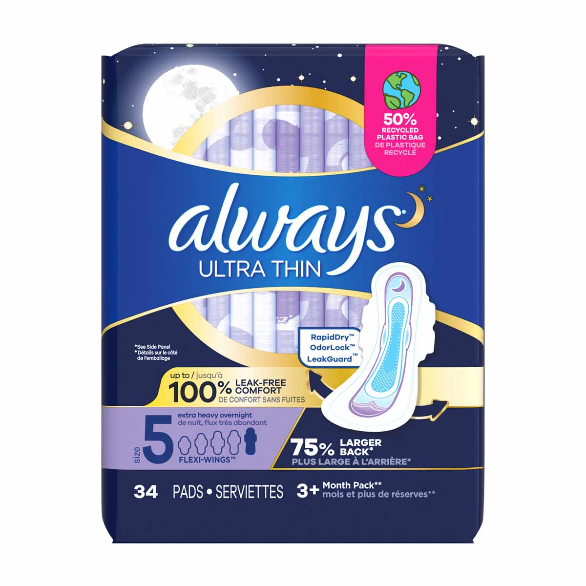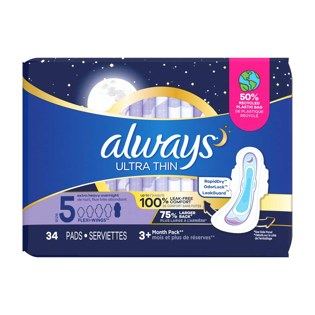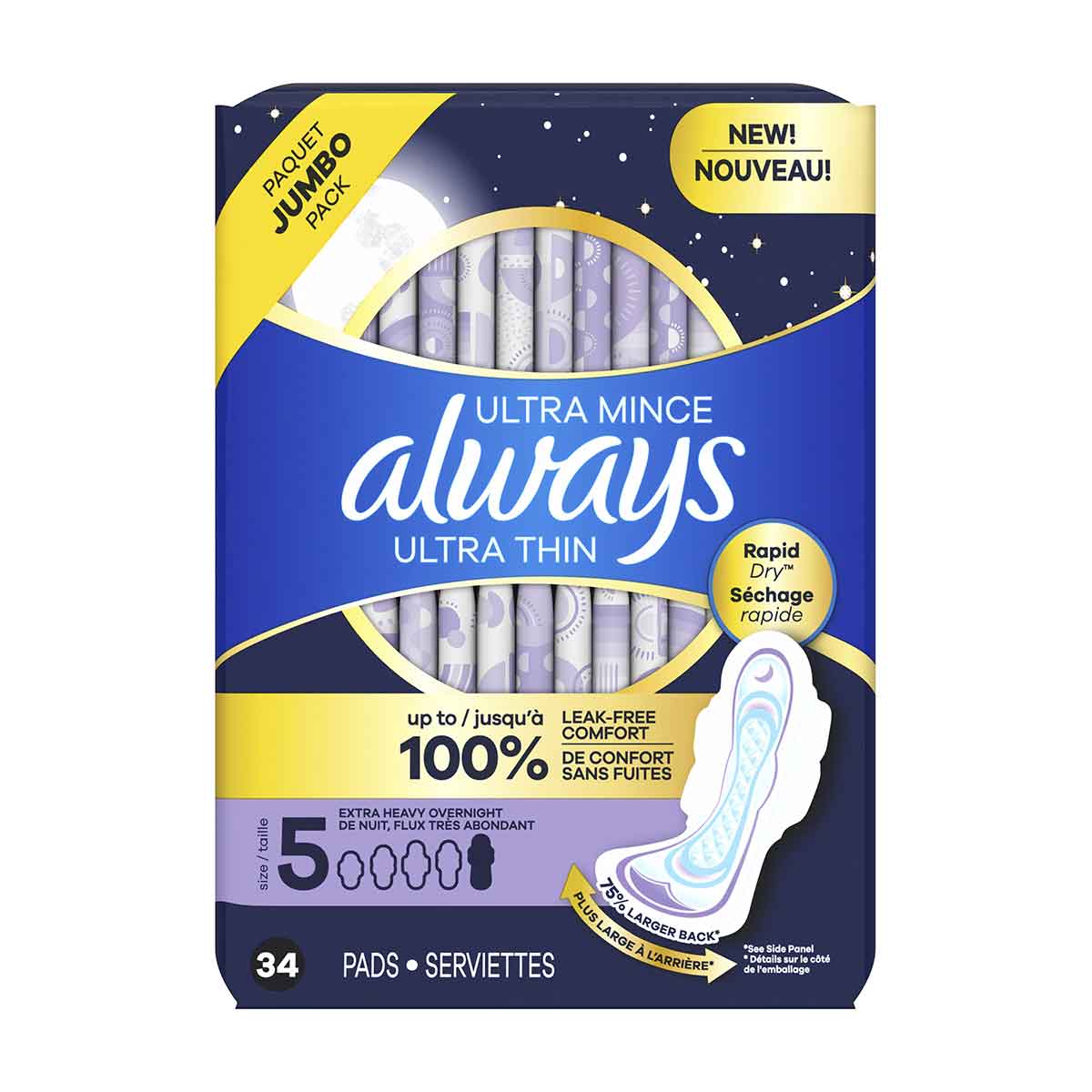 • Always Ultra Thin Overnight Pads, Size 5, Extra Heavy Overnight, Unscented, 34 Count