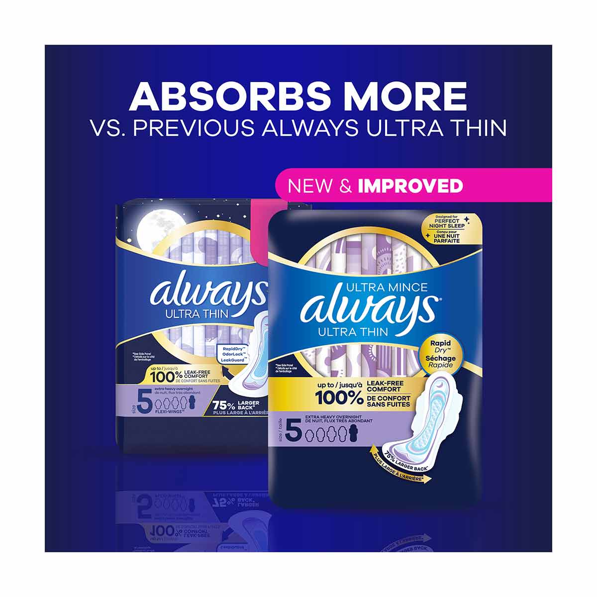 • GET 75% MORE BACK COVERAGE than Always Ultra Thin Regular Pad