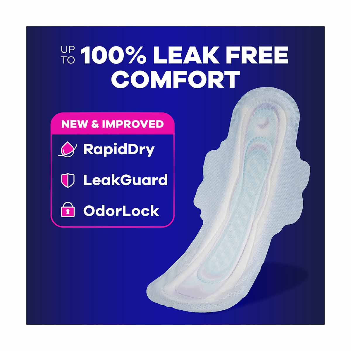 • FEEL CLEAN & DRY with RapidDRY technology that absorbs in seconds