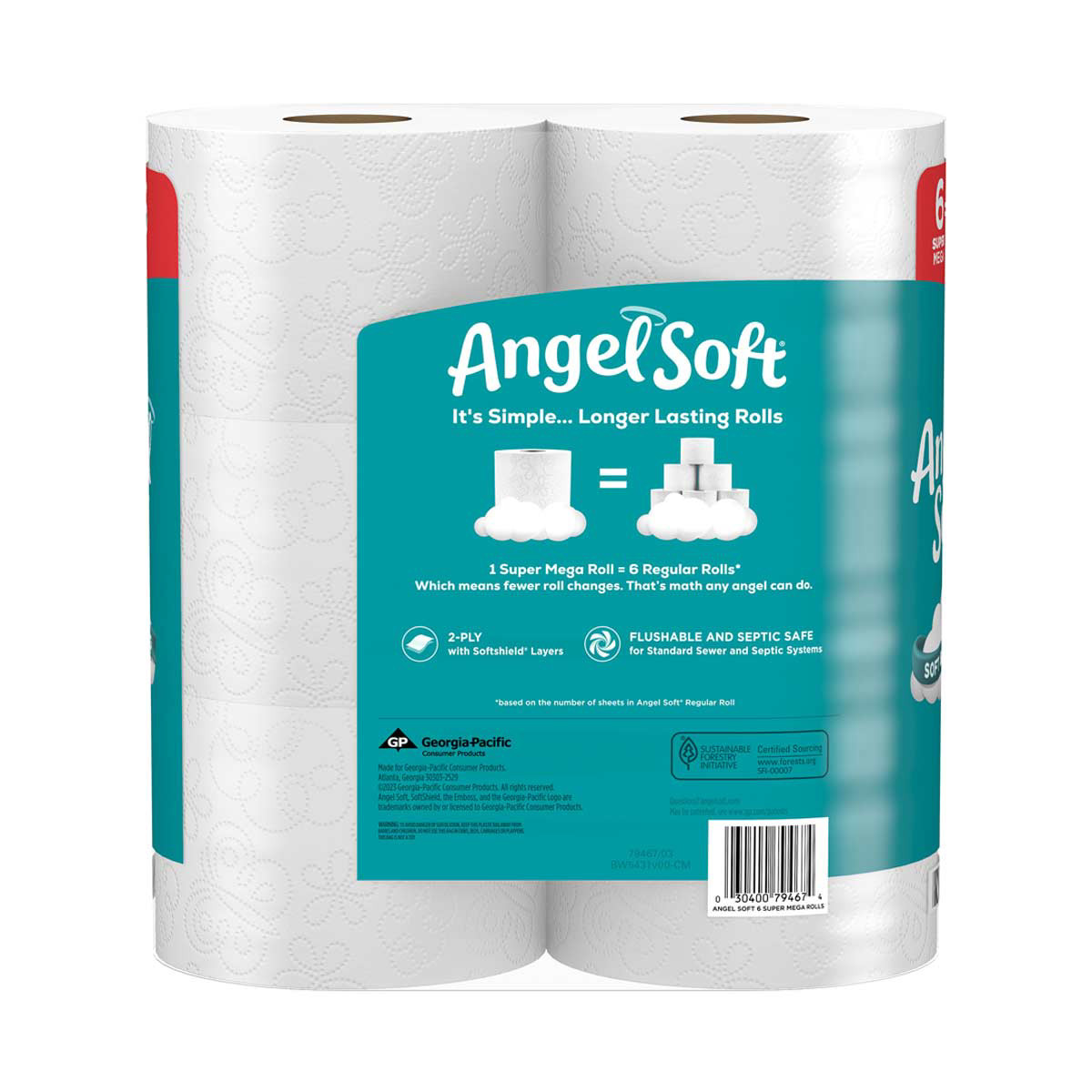 - Each Super Mega Roll is equal to 6 Angel Soft® Regular Rolls, so you can change the roll less often.