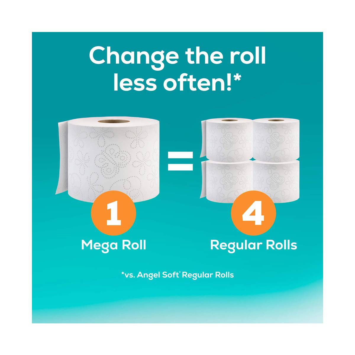 - Each Mega Roll is equal to 4 Angel Soft Regular Rolls, so you can change the roll less often.
