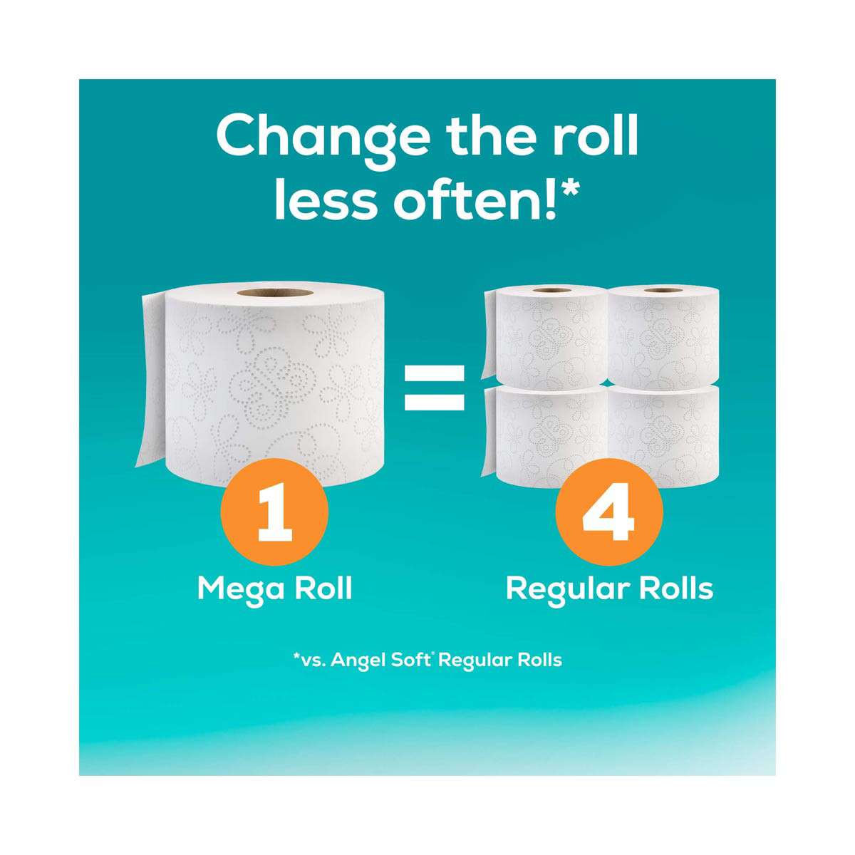 - Each Mega Roll is equal to 4 Angel Soft Regular Rolls, so you can change the roll less often.