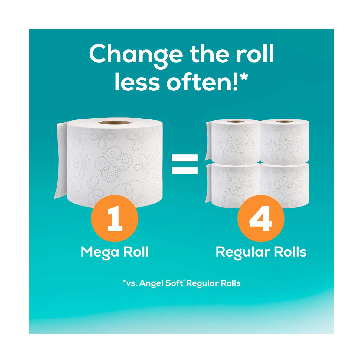 - Each Mega Roll is equal to 4 Angel Soft Regular Rolls, so you can change the roll less often.