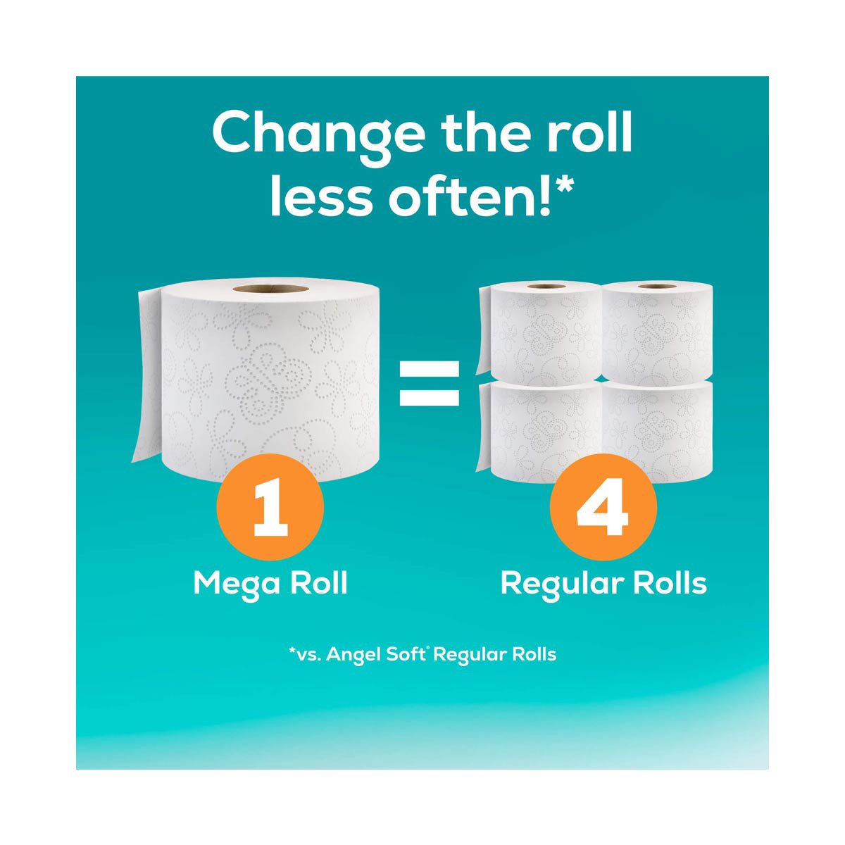 - Each Mega Roll is equal to 4 Angel Soft Regular Rolls, so you can change the roll less often.