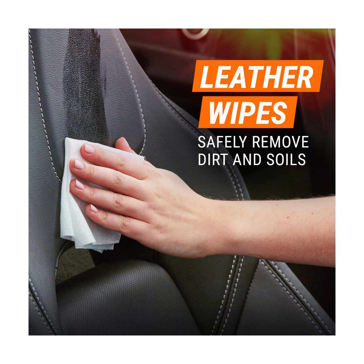 - A convenient, disposable wipe formulated specifically for complete leather care for surfaces inside your vehicle