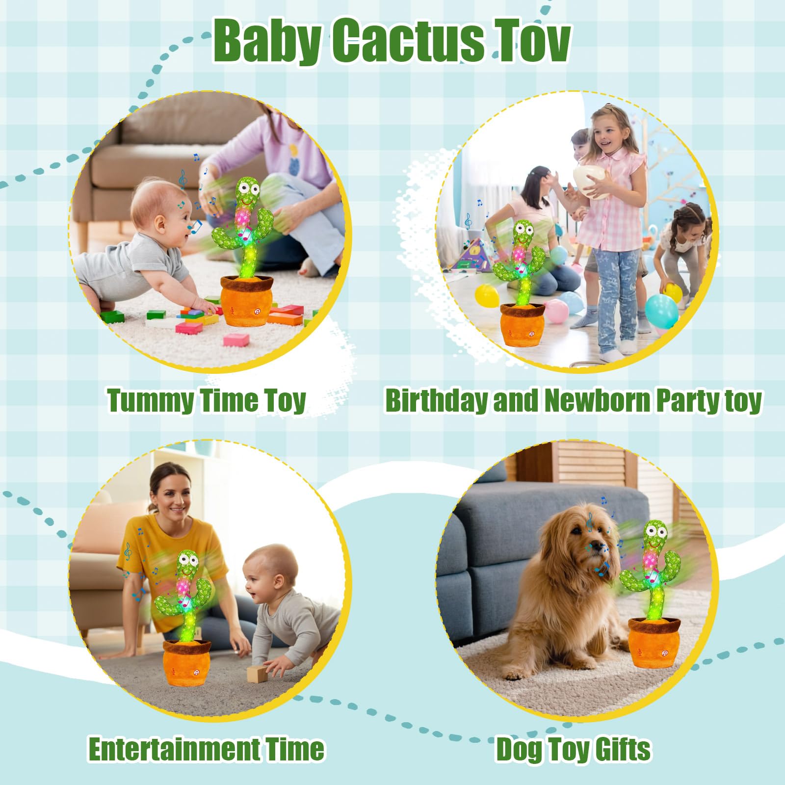 - Education Gift Talking Cactus : singing cactus toy mimic records and repeats what kids say in a humorous and fun way! For example, "Happy birthday! Cultivate your baby's language development. This baby dancing cactus With its comical movements and vibrant lights, it encourages children to wiggle and giggle, enhancing their motor skills and sensory experiences.