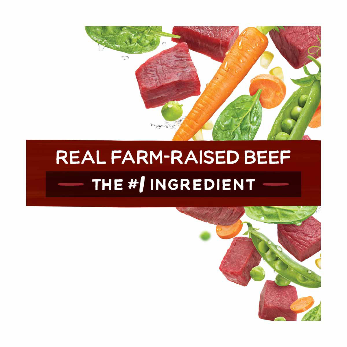 - Purina Beneful Originals with real farm-raised beef as the number 1 ingredient, natural dog food with added vitamins, minerals and nutrients