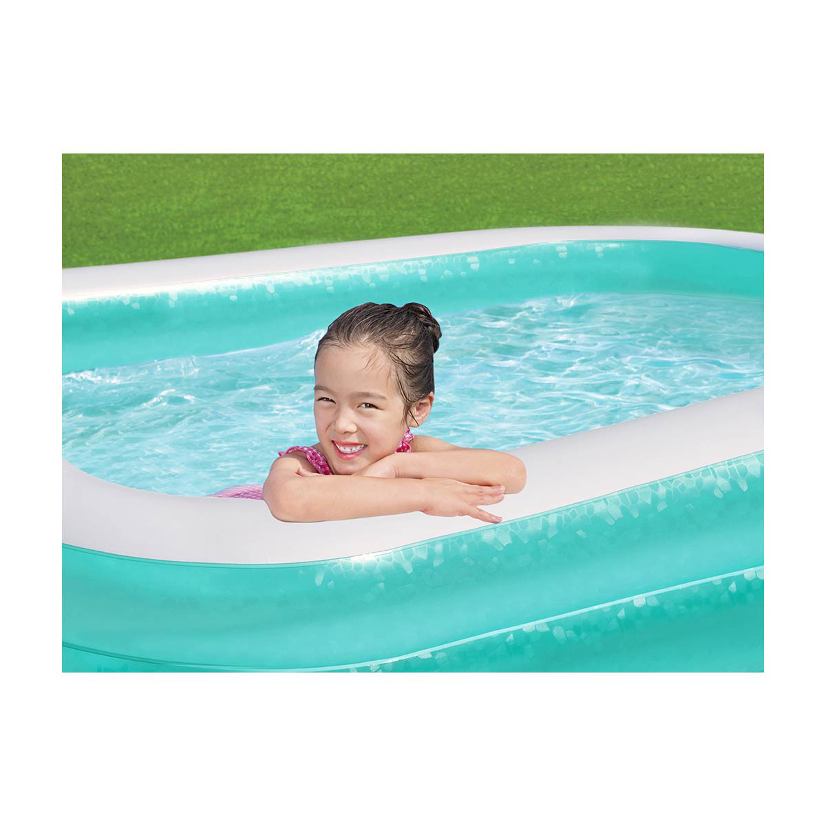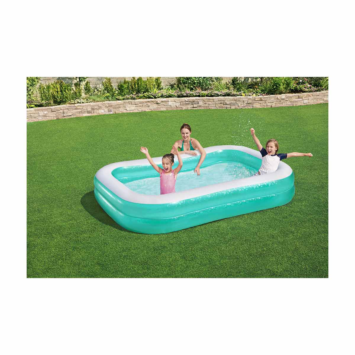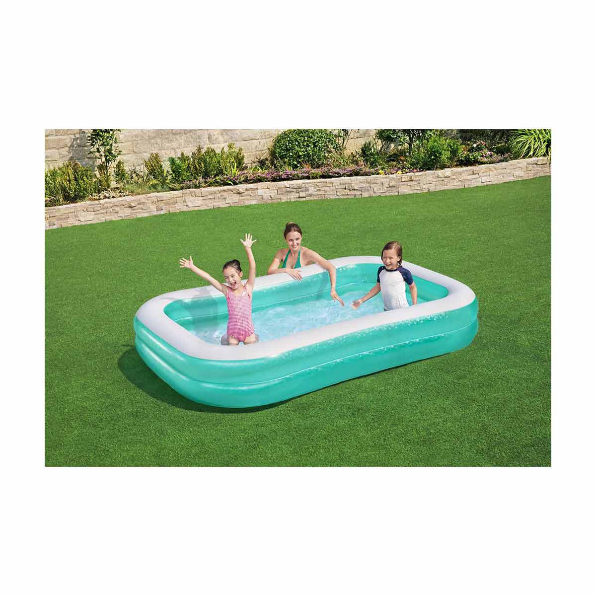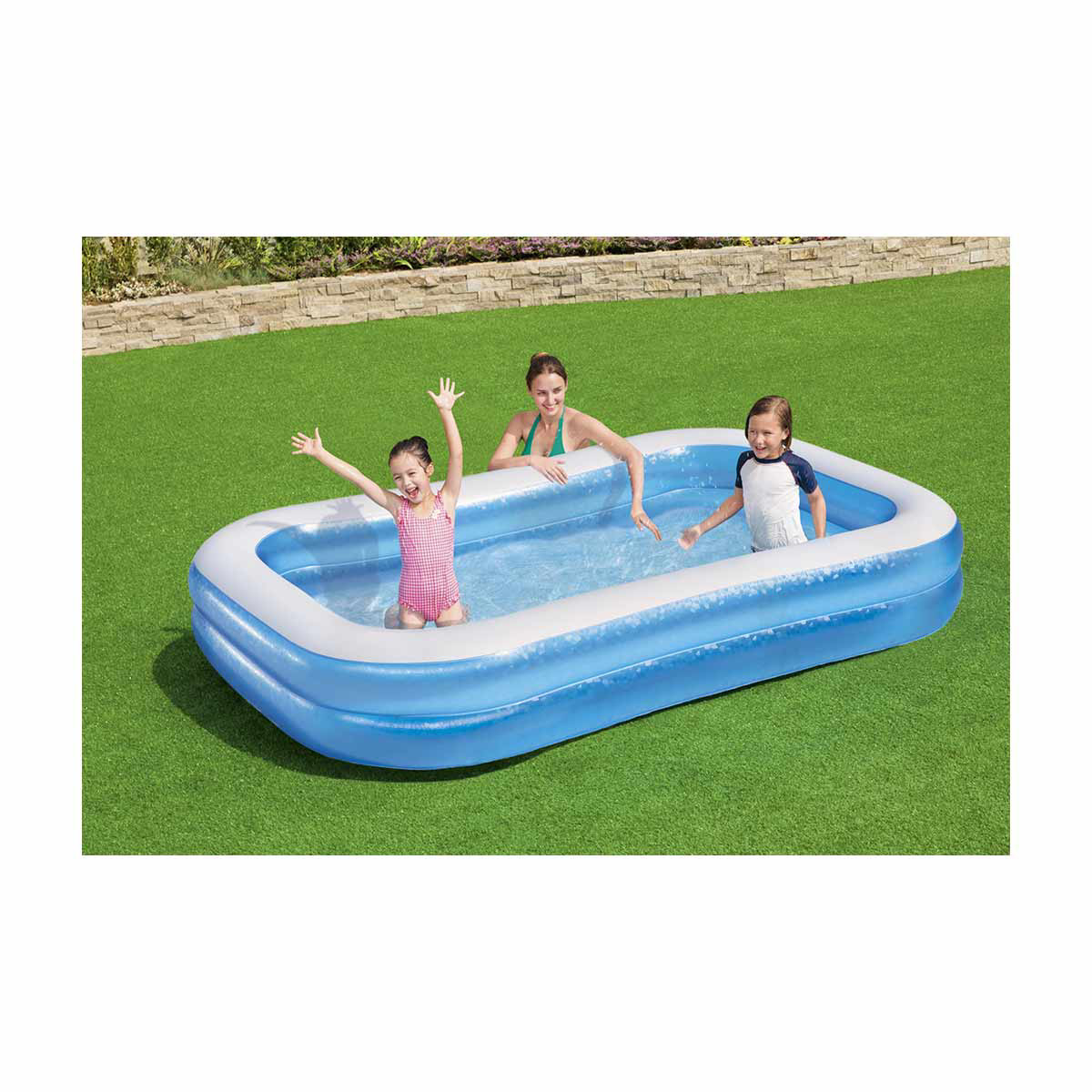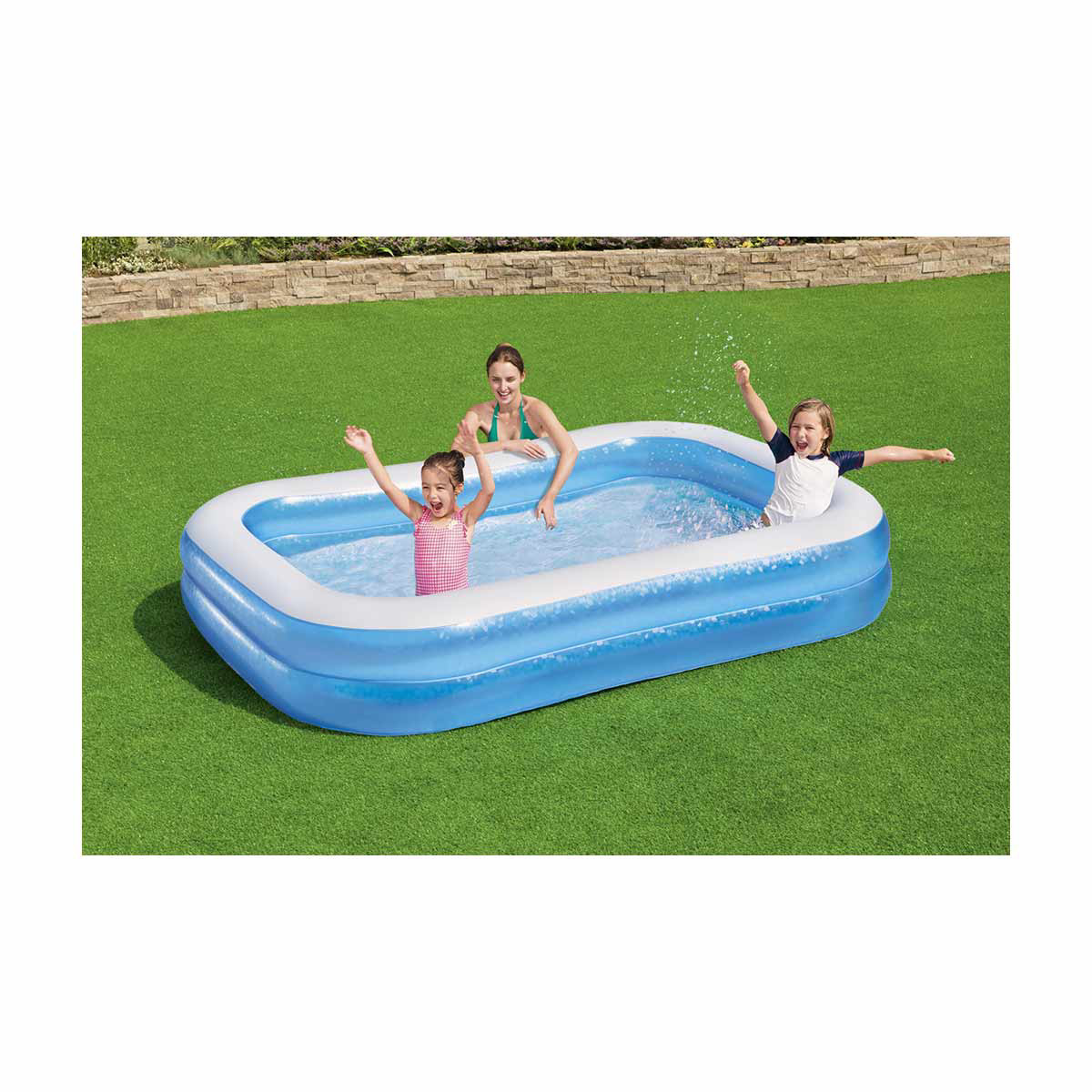 • Spacious inflatable family pool for backyard fun