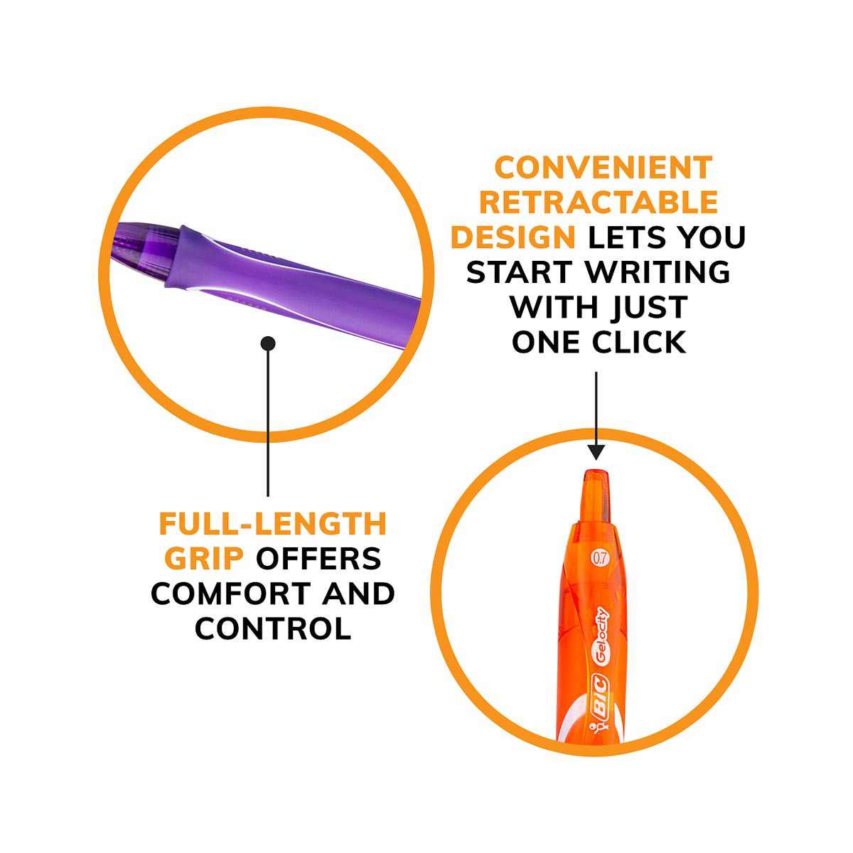 - Retractable gel pens with a full-length grip for simple use and all-day comfort
