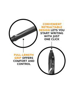 - Retractable gel pens with a full-length grip for simple use and all-day comfort