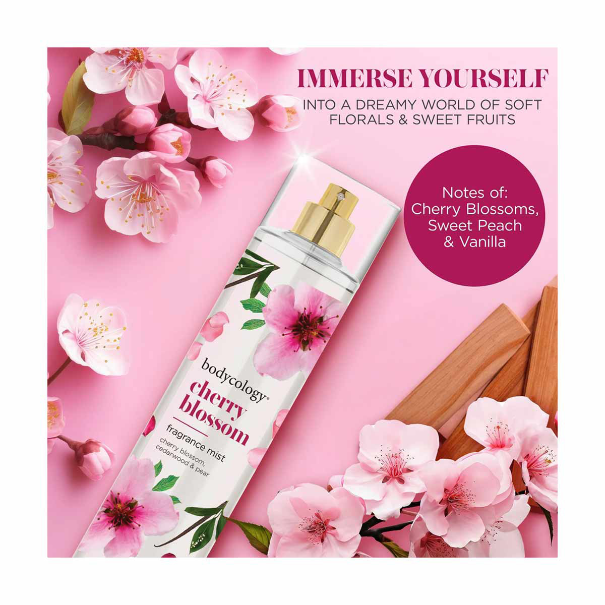 • Delicate cherry blossoms, sweet peach, and grounding, warm vanilla