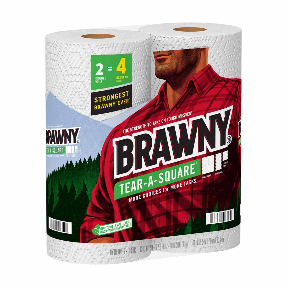 Brawny Tear-A-Square Paper Towels, Double Rolls, 2 ct
