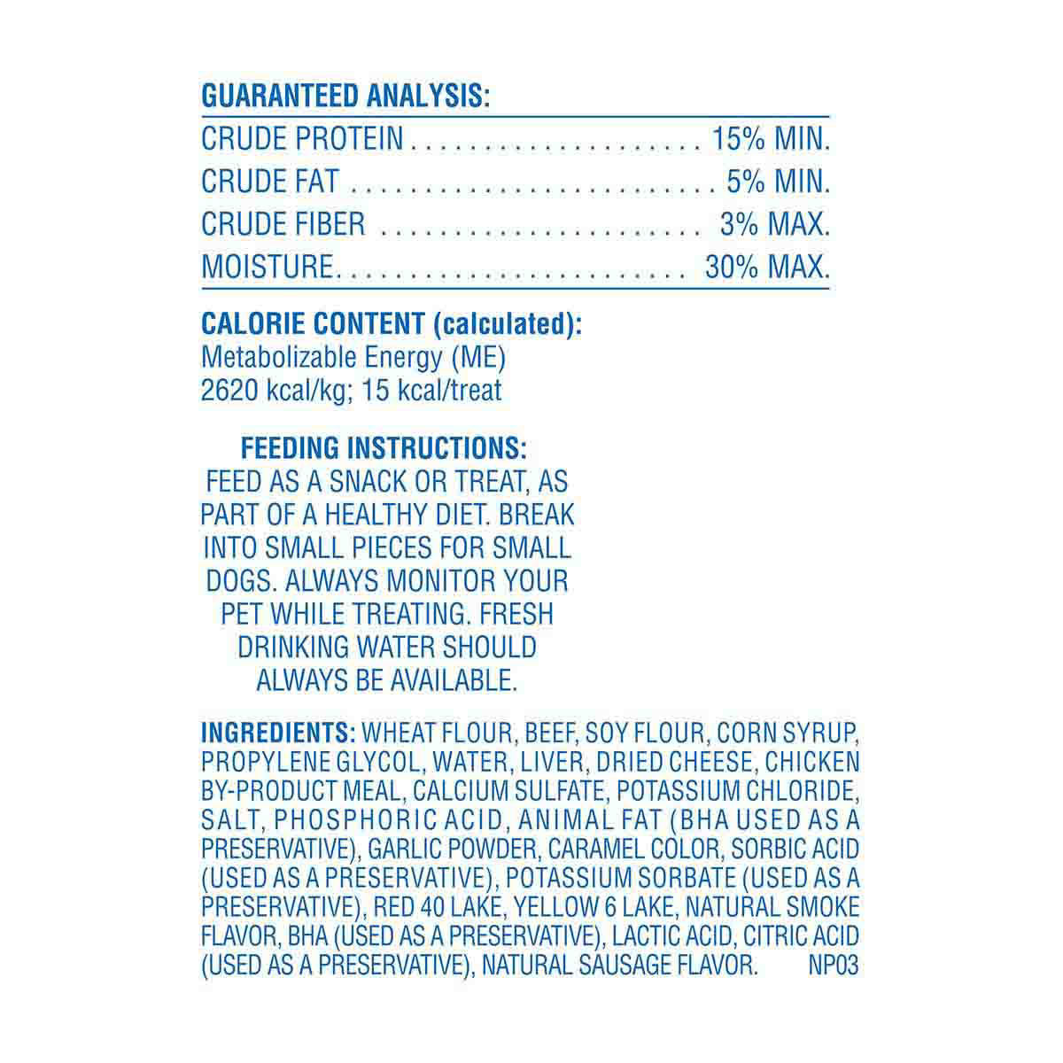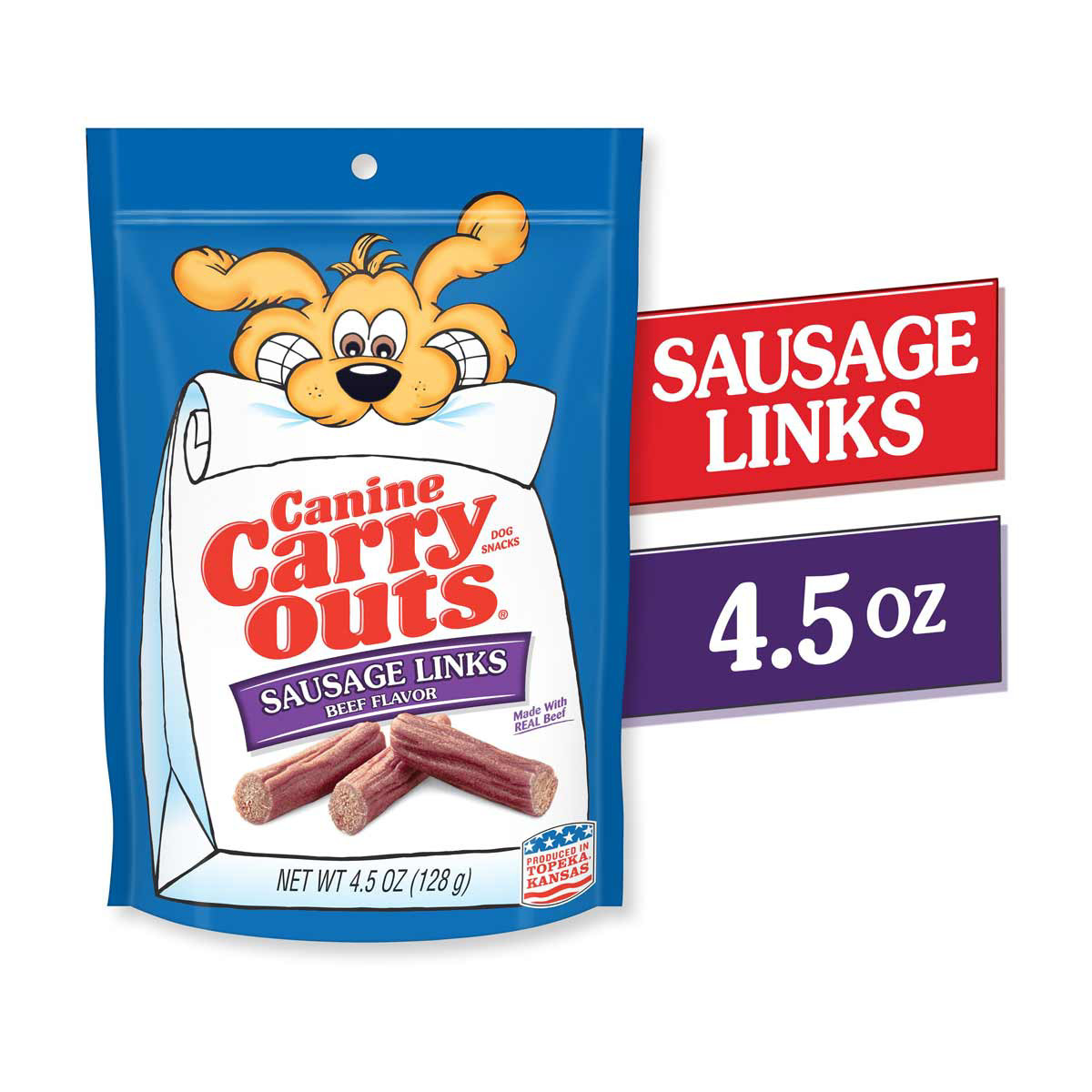• Contains one (1) 4.5-ounce bag of Canine Carry Outs Sausage Links Beef Flavor dog treats