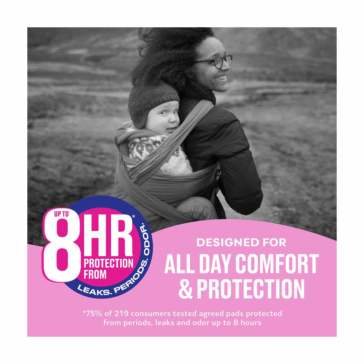- DESIGNED FOR ALL DAY COMFORT AND PROTECTION – Up to 8 hours of protection from periods, leaks, and odors*