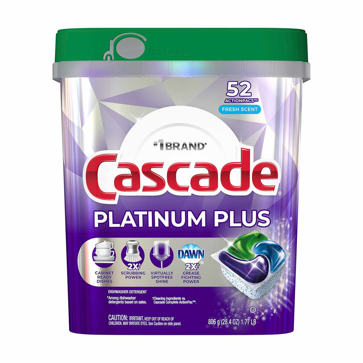 Cascade Platinum Plus ActionPacs Dishwasher Detergent, Fresh Scent, 52 ct