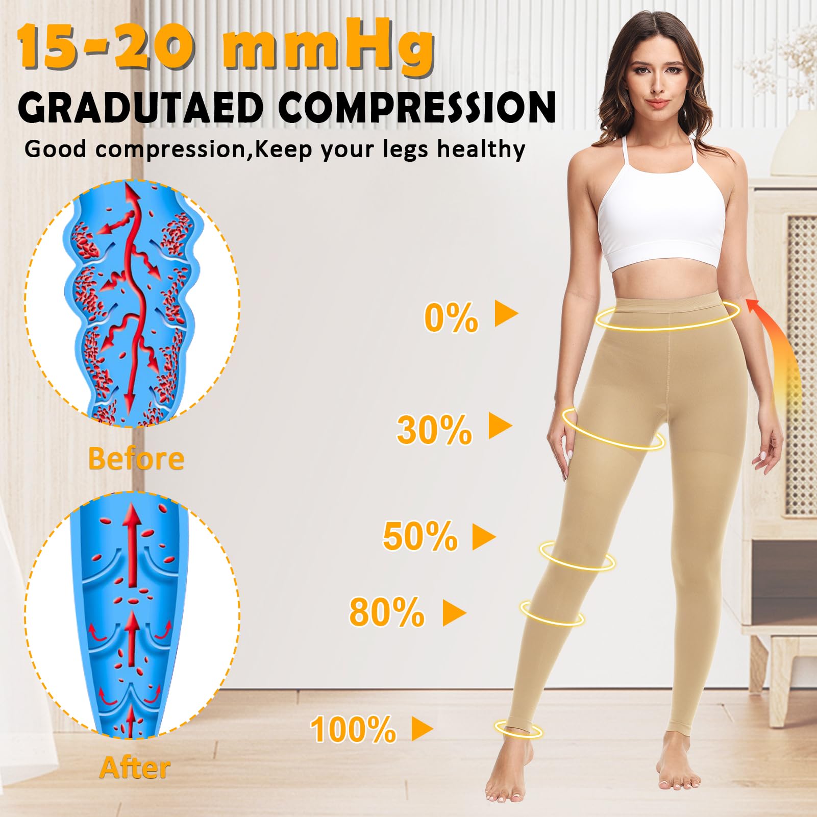 - GRADUATED COMPRESSION: The 15-20 mmHg compression pantyhose for women men provide graduated compression from the ankle to the waist. The pressure value is the largest at the ankle and gradually decreases upward, preventing the blood from flowing back to the heart. CASMON medical compression stockings for women can be used after surgery recovery, relieving lower limb edema, soreness, varicose veins, tired legs, bad circulation etc