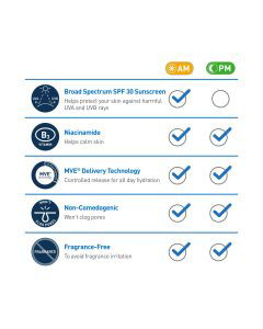- Moisturizes and protects skin with three essential ceramides, niacinamide, and MVE patented technology