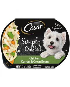 • Cesar Simply Crafted Adult Wet Dog Food Meal Topper, Chicken, Carrots & Green Beans, 1.3 oz Tub