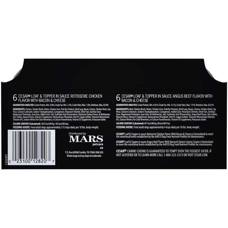 • Cesar Wet Dog Food Loaf & Topper in Sauce Bacon Feast Variety Pack, (12) 3.5 oz Trays