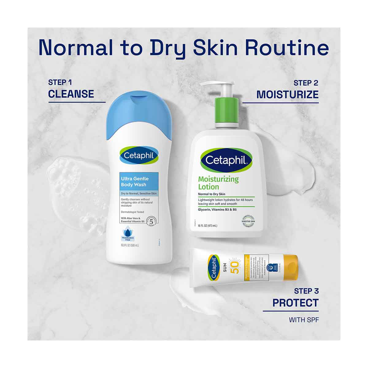 - CETAPHIL BODY MOISTURIZING LOTION FOR NORMAL TO DRY SKIN: Lightweight lotion hydrates for 48 hours leaving skin soft and smooth