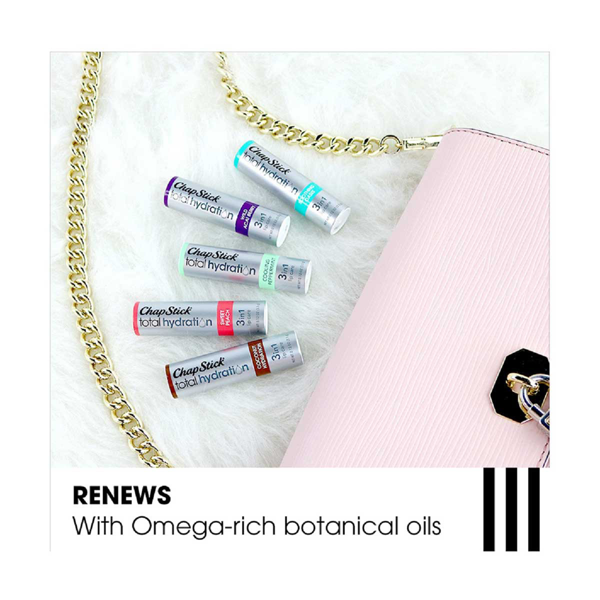- One 0.12-ounce ChapStick Total Hydration Cooling Peppermint Lip Balm tube