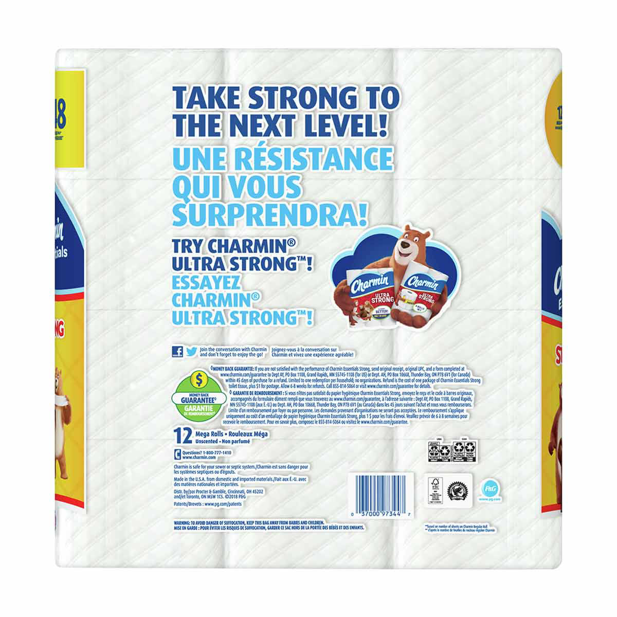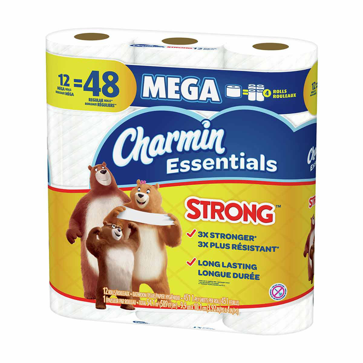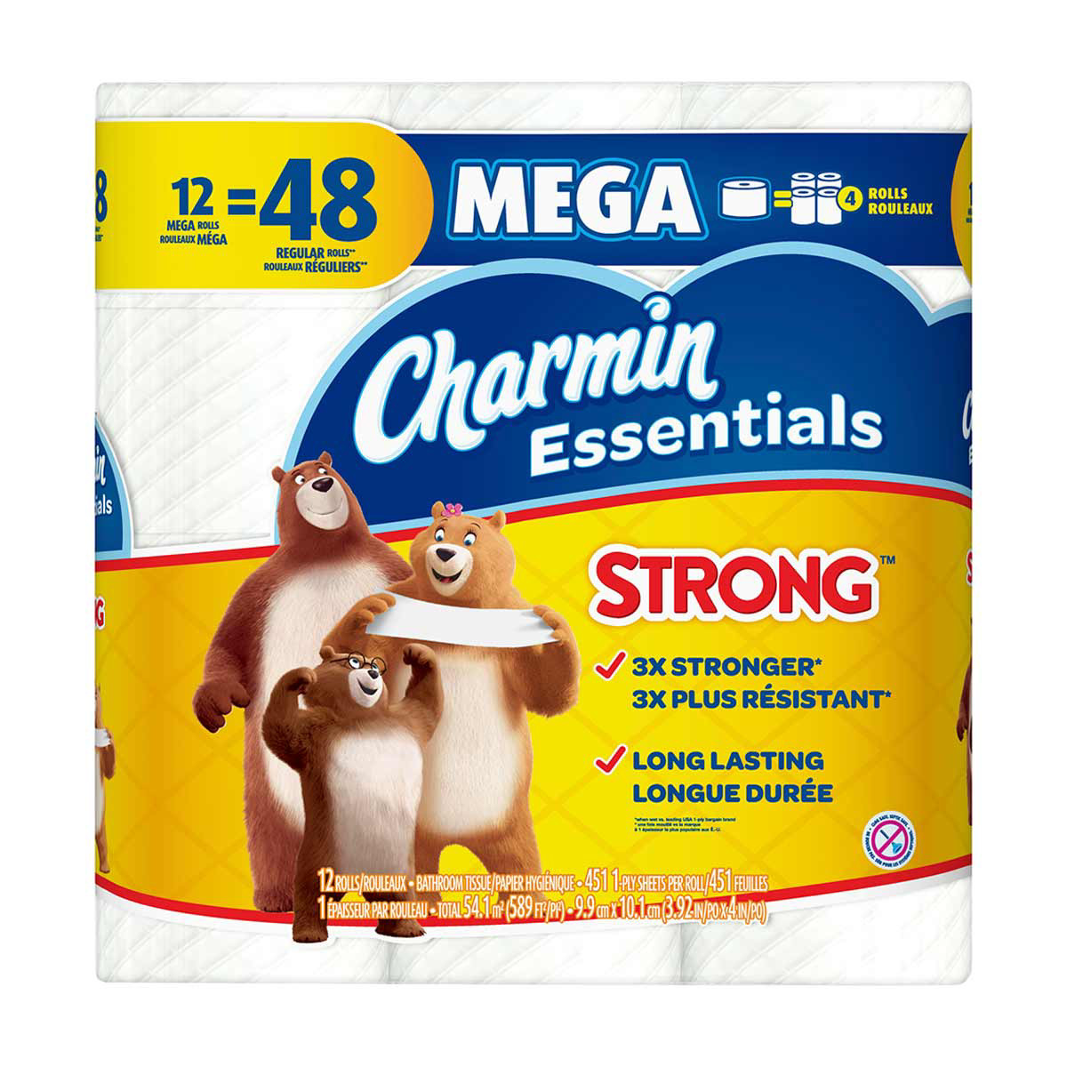 • Pack contains 12 Mega Rolls (451 sheets per roll) of Charmin Essentials Strong toilet paper