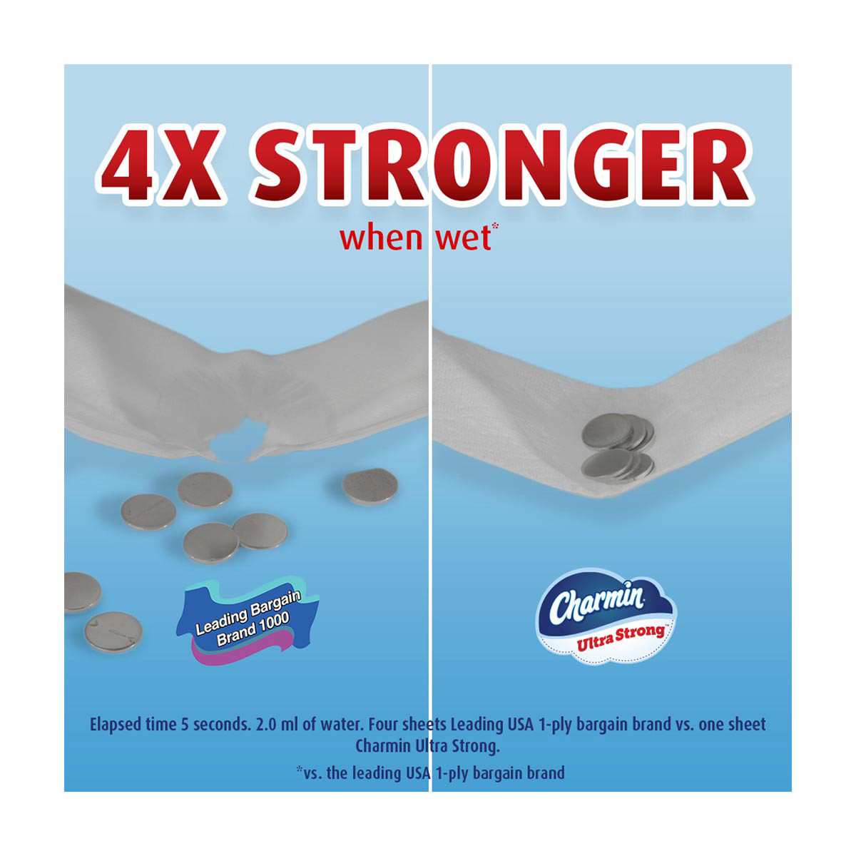 • 4X stronger when wet compared to leading 1-ply brands
