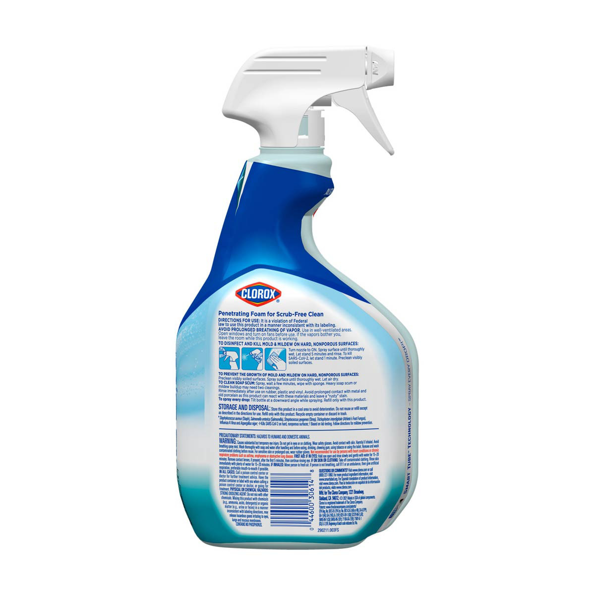 - SCRUB FREE CLEAN: Powerful bathroom spray with bleach provides foam coverage that easily removes soap scum and mold and mildew stains in your bathroom, no scrubbing required