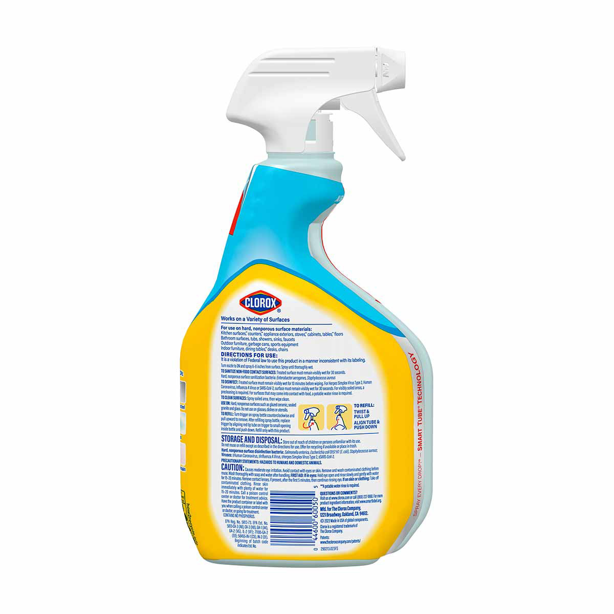 - CRISP LEMON SCENT: This lemon scented cleaner spray from Clorox lets you clean without the odor of bleach, so you can use it throughout your home or facility