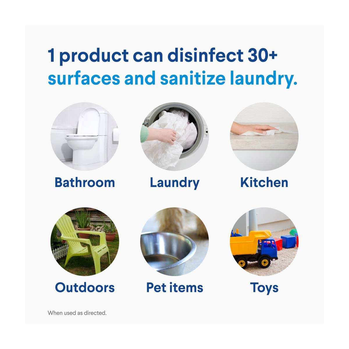 - POWERFUL CLEANER: Keeps clothes whiter longer disinfects 99.9% of germs (including norovirus flu virus MRSA E. Coli and Salmonella) plus cleans and protects household surfaces
