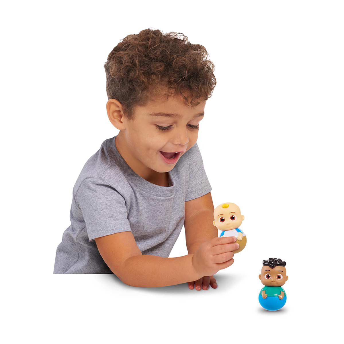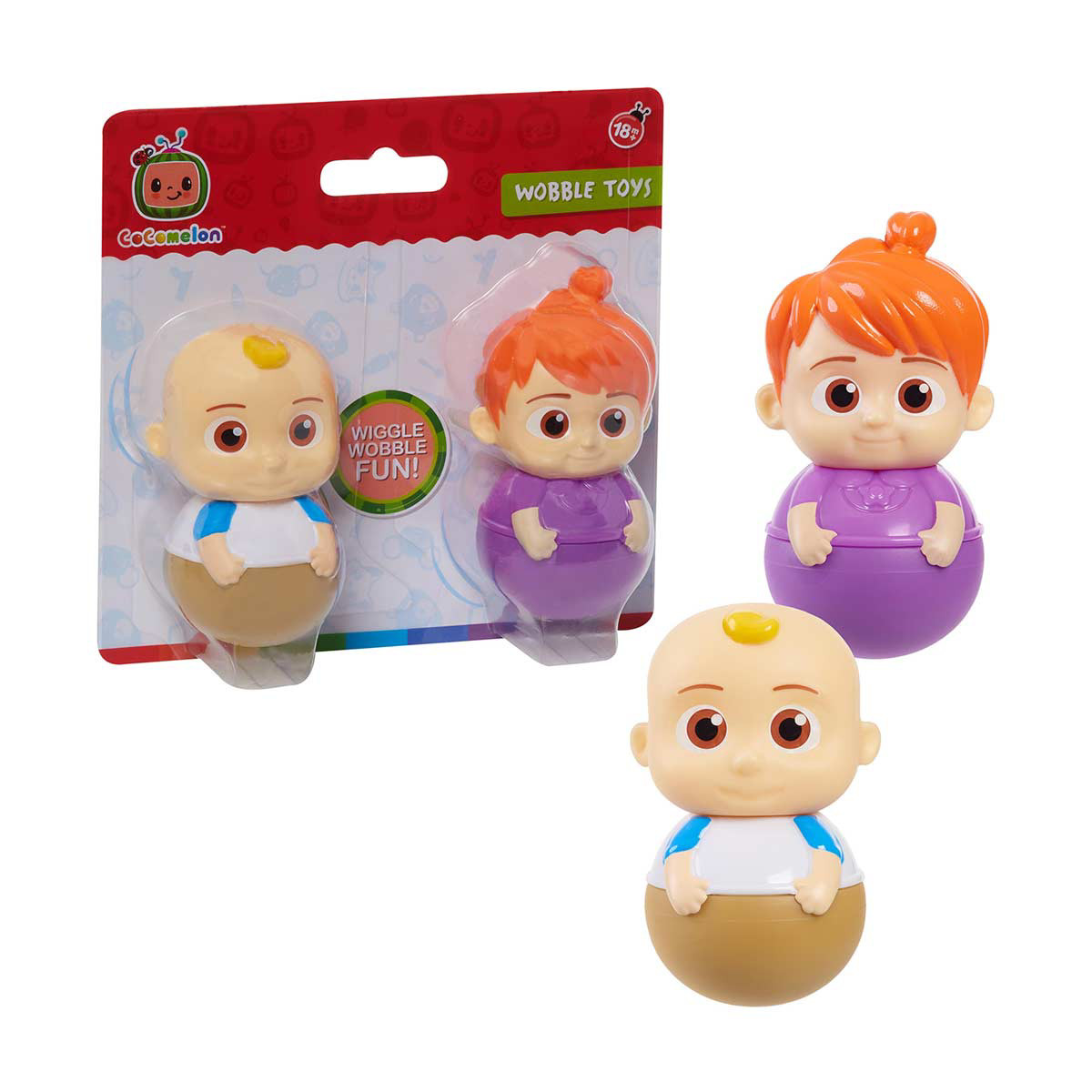 - Wobbly Fun: This CoComelon toy for babies and toddlers provides endless fun as kids poke, tap, or swat the weighted wobble toys, but can’t knock them over. Wobble figures roll, bob, wiggle, and spin, but won’t fall down!