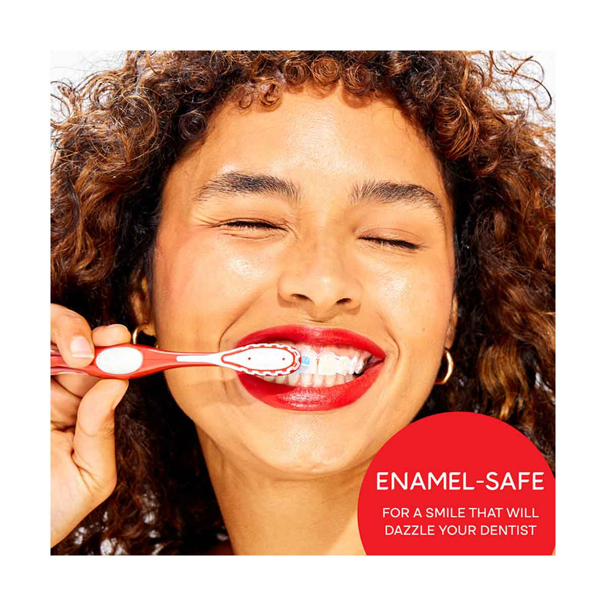 • Removes 5X more surface stains* with micro-polishing action (*vs. ordinary non whitening toothpaste, after 2 weeks of continued use)