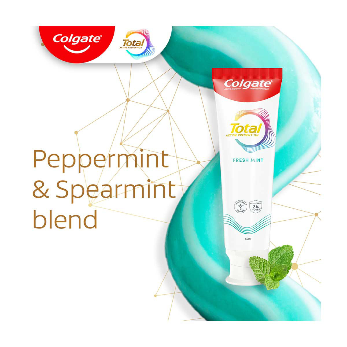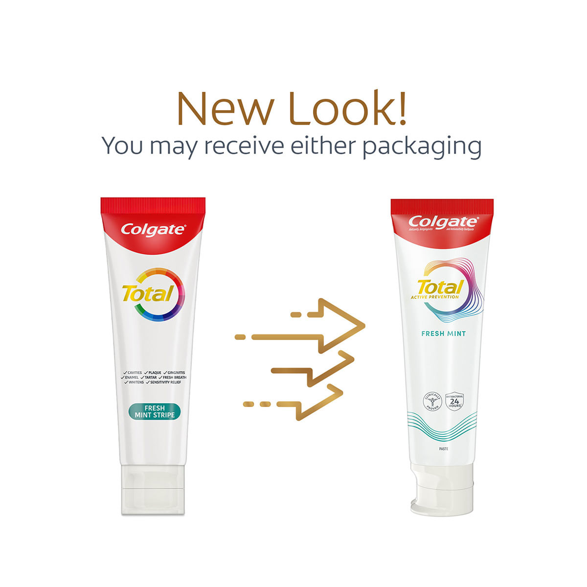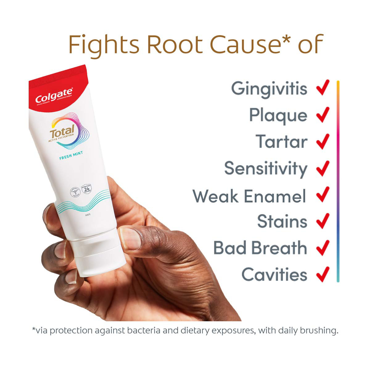 - Includes one (1) 5.1 oz tube of Colgate Total Active Prevention Fresh Mint Toothpaste