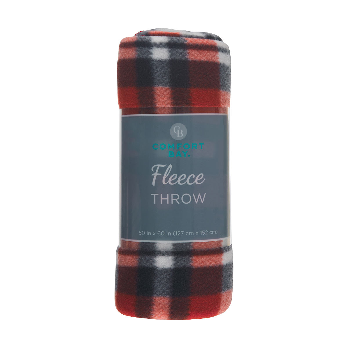 Comfort Bay Fleece Throw, Plaid Print, 50 in x 60 in - Assorted