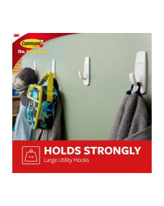 - Includes - 1 large, white command utility hook and 2 large command strips; 1 hook holds up to 5 lbs