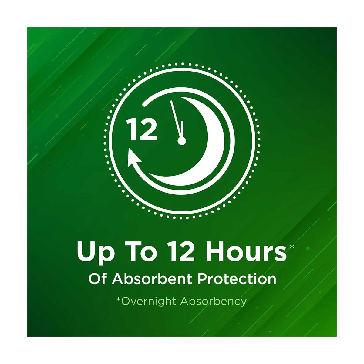 • Up to 12 hours of absorbent protection, ideal for overnight use