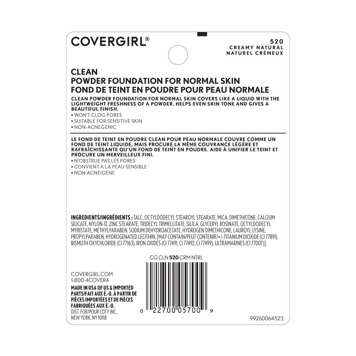 CoverGirl Clean Simply Powder Foundation, Creamy Natural, 0.44 fl oz