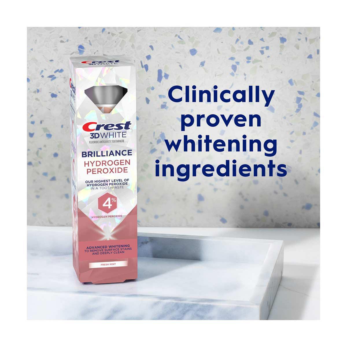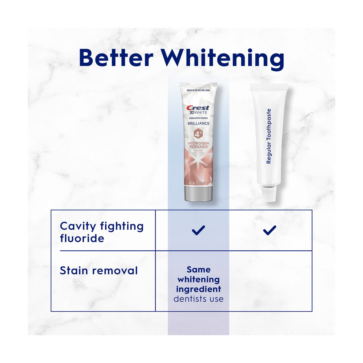 • Crest 3D White Brilliance Hydrogen Peroxide Teeth Whitening Toothpaste, 3.8 oz, Anticavity Fluoride Toothpaste
