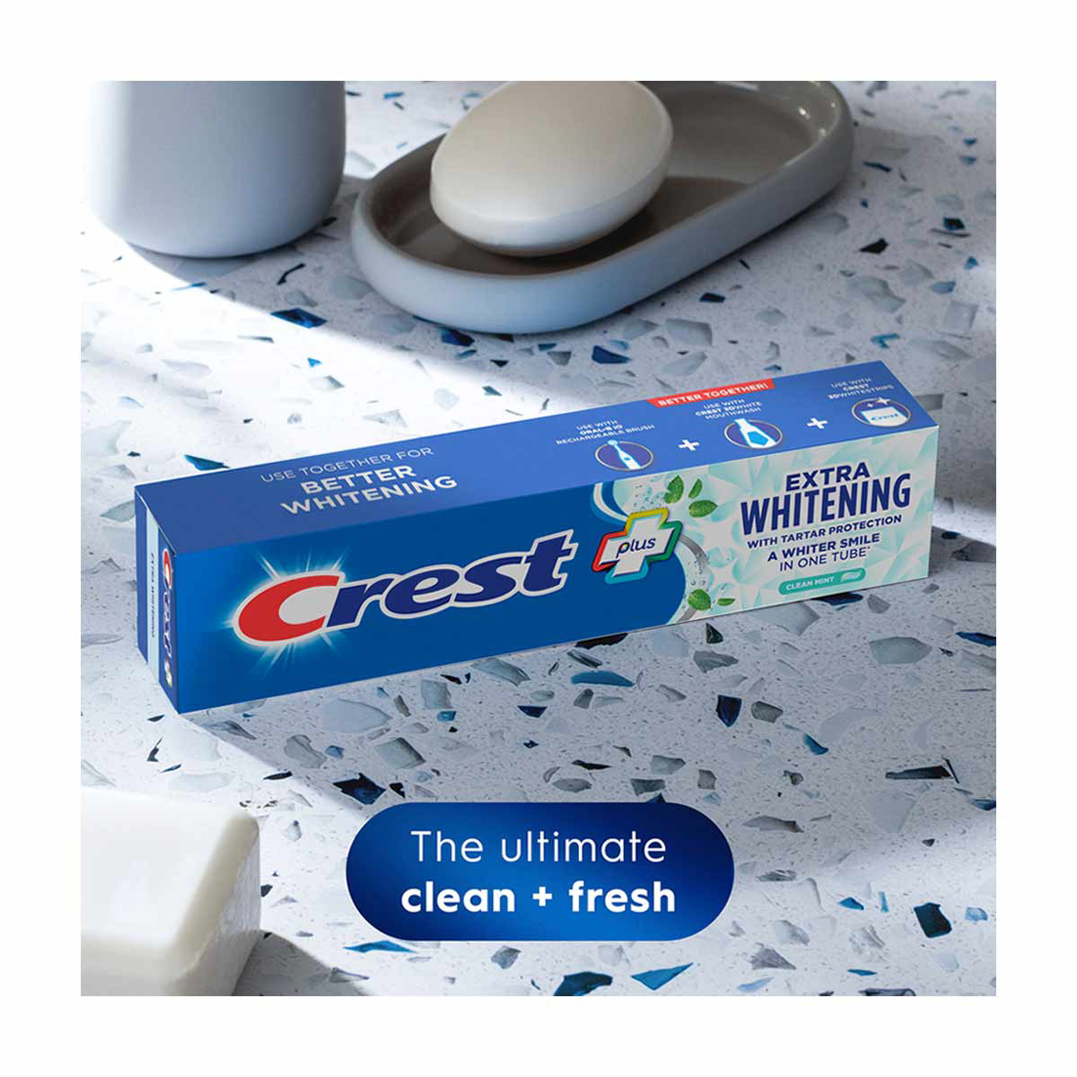 - You will receive (1) 5.4 oz tube of Crest Plus Extra Whitening Clean Mint Toothpaste