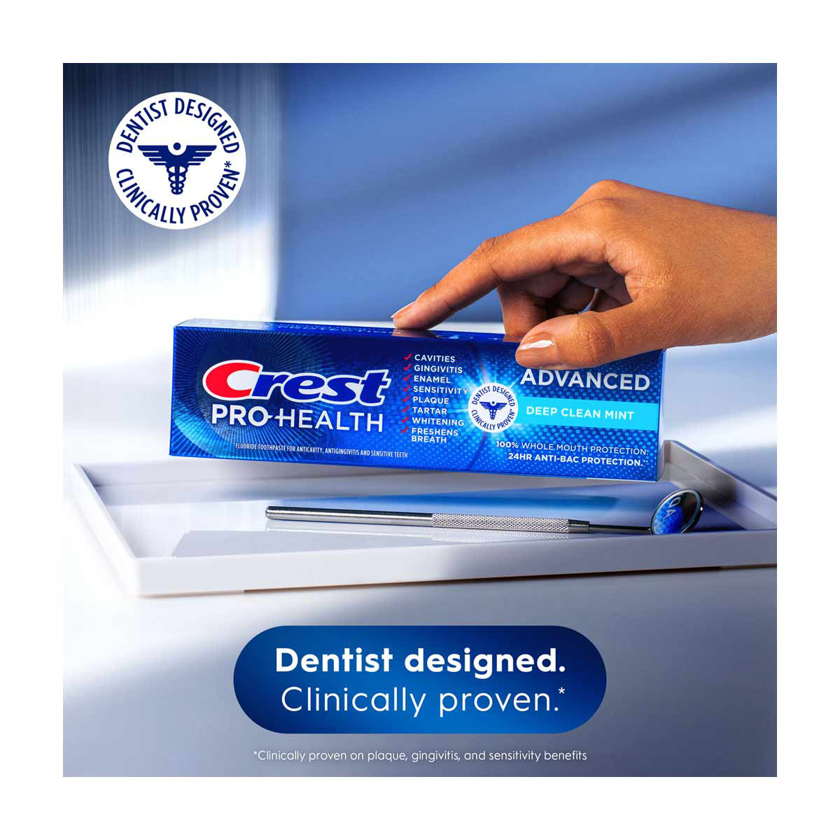 • Clinically proven to protect against plaque, gingivitis, and sensitivity*